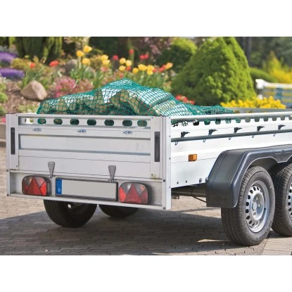 Das grüne LUX-TOOLS Abdecknetz zur Ladungssicherung eignet sich für Anhänger sowie Pritschen und passt sich durch die Struktur des Netzes optimal der Ladung an. Es hat eine Größe von 1,5 m x 2,2 m, besteht aus Polypropylen und ist DEKRA geprüft sowie zertifiziert. Die Materialstärke beträgt 3 mm und die Maschweite 45 mm. Ein 6 mm starkes, umlaufendes Gummiseil ist zusätzlich im Netz eingefasst, womit es einfach befestigt werden kann. Zur weiteren Fixierung sind im Lieferumfang vier orange Klemmschlossgurte mit den Maßen 25 mm x 50 cm enthalten. Das gesamte Set wird in einem stabilen Kunststoffkoffer geliefert.