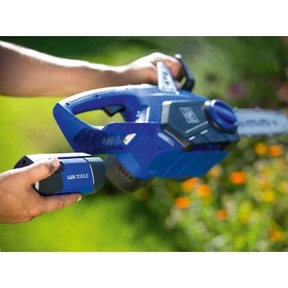 Der leistungsstarke LUX-TOOLS Ersatzakku sorgt für einen ununterbrochenen Arbeitsfluss. Er eignet sich sowohl für die LUX 18 V Li-Ion Kettensäge, als auch für die Teleskop-Heckenschere und die Astsäge. Der 18 V Li-Ion Akku besitzt eine Leistung von 3 Ah. Mit einem Akku ist die Kettensäge transportierbar und ermöglicht somit ein flexibles Arbeiten.