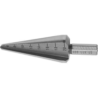 Aus hochwertigem Schnellarbeitsstahl hergestellt, zeichnet sich der LUX-TOOLS Blechschälbohrer Comfort Ø 6 mm – 20 mm durch seine robuste Qualität und Langlebigkeit aus. Er eignet sich für den Einsatzbereich des Handwerkers aber auch des ambitionierten Heimwerkers. Mit dem Zubehör bearbeiten Sie Materialien wie Dünnblech und Kunststoff sauber mit einem erhöhten Spanvolumen. Die kegelförmige Spitze ist mit mehreren Schneiden ausgestattet. Über die eingravierte Skala können Sie bequem den Bohrlochdurchmesser kontrollieren. Der Blechschälbohrer mit einem Spitzenwinkel von 118 Grad eignet sich sehr gut für handelsübliche Handbohrmaschinen.