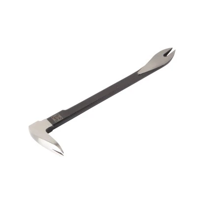 Das LUX-TOOLS Nageleisen hat eine Länge von 250 mm. Die eine Seite ist zum Herausziehen von eingeschlagenen Metallnägeln geeignet und die andere Seite ist mit einem Beitel für Stemmarbeiten versehen.