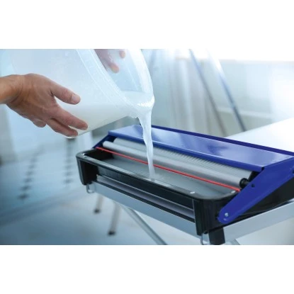 Das LUX-TOOLS Kleistergerät **** Comfort ist ein sehr hilfreicher Tapezierhelfer, da es das Einkleistern der Tapete enorm vereinfacht. Das Kleistergerät besteht aus einer schwarzen Edelstahlwanne (66 cm x 26 cm x 8,8 cm) und zwei schwarzen Kunststoff-Einsteckarmen zur Aufnahme der Tapetenrolle. Zusätzlich verfügt das Kleistergerät über zwei Metallbügel zur leichten Tischmontage, zwei Schrauben zur Regulierung des Kleisterauftrags, eine große Kleisterauftragswalze und einem Metallrohr zur Tapetenführung. Dadurch erhalten Sie eine gleichmäßig eingekleisterte Tapete – ohne Kleister auf Ihrem Tisch.