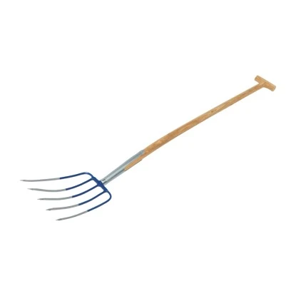 Die LUX-TOOLS Laub- und Kompostgabel mit 5 leicht gebogenen Rundzinken und Eschen-T-Stiel eignet sich zum Umschichten von Kompost, für Laub oder auch für andere Arbeiten im Garten für lockere bis leicht verfestigte Gartenabfälle. Der Eschen-T- Stiel hat eine Länge von 1,1 m, der Gabelkopf hat eine Breite von 210 mm.