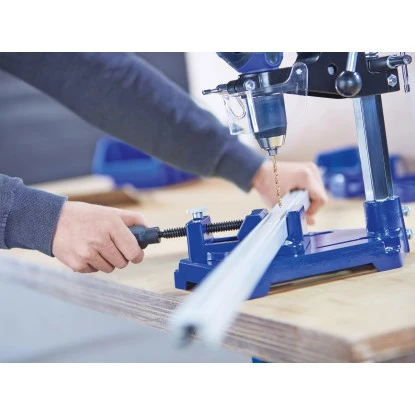 Der kleine LUX-TOOLS Maschinenschraubstock ist aus Aluminium-Durchguss gefertigt und eignet sich mit seinen Prismen optimal zum Spannen von Rundmaterial. Durch die Spannweite von 60 mm ist das Bearbeiten von kleineren Rundrohren kein Problem.
