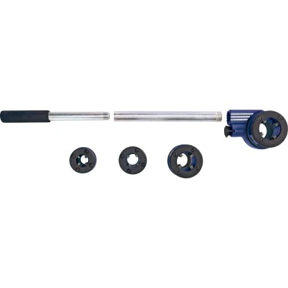 Das LUX-TOOLS Schneidkluppen-Set Classic eignet sich zum mühelosen Schneiden von Außengewinden. Es dient Ihnen als praktisches Werkzeug bei der Bearbeitung von Stahlrohren. Das mehrteilige Set besteht aus Schneidkluppe, Griff mit Verlängerungsstange, vier verschiedenen Einsätzen und einem Koffer. Hergestellt ist die Schneidkluppe aus robustem Stahl. Die Einsätze eignen sich zum Schneiden von kleineren Gewinden im Bereich von 21 mm (R 1/2″) bis 41,9 mm (R 1 1/4″). Zum manuellen Bedienen ist ein angenehmer Griff angebracht. Er sorgt für ein komfortables Handling. Die Ratschenrichtung ist umstellbar und lässt sich bequem arretieren.