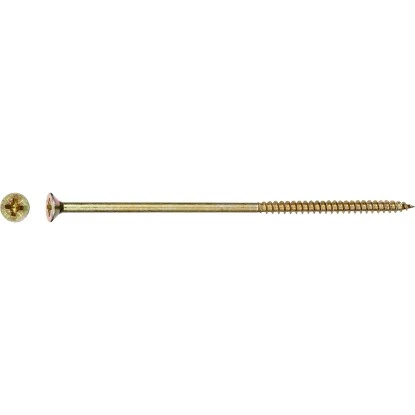 Die LUX-TOOLS Spanplattenschraube & Universalschraube aus gelb verzinktem Stahl in der Größe Ø 6 mm x 150 mm bietet Ihnen vielfältige Anwendungsmöglichkeiten: Im Holzbau, bei Kunststoffen sowie – unter Verwendung geeigneter Dübel – auch Arbeiten in Beton. Sie ist ein universeller Helfer, der in Ihrem Heim nicht fehlen sollte. Das Teilgewinde wird gerne genutzt um verschiedene Bauteile unter hohem Druck miteinander zu verbinden. Das Gewinde zieht dabei die zu verbinden Teile fest aneinander.