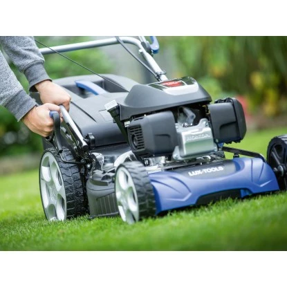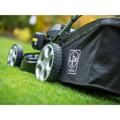 Der LUX-TOOLS Benzin-Rasenmäher B-RM-51HMA steht Ihnen bei der fachmännischen Pflege Ihres Rasen zur Seite und ermöglicht Ihnen eine kabellose Bewegungsfreiheit beim Schneiden ausgedehnter Rasenflächen. Dabei verfügt er über einen leistungsstarken Honda GVC 170 Motor mit 3.100 W. Sein Hubraum hat eine Größe von 167 cm³. Durch seine komfortable Schnittbreite von 51 cm eignet sich der Rasenmäher ideal für weiträumige Grünflächen bis 1700 m².