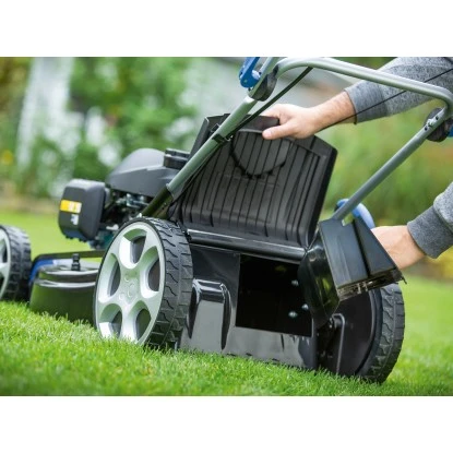 Durch die Mulchfunktion können Sie das Schnittgut als Dünger auf Ihren Rasen ausbringen. Als weiteres Extra besitzt der Rasenmäher eine komfortable Selbstreinigungsfunktion mit Wasserschlauchanschluss. Zum Einsammeln Ihres Rasenschnitts dient ein Auffangsack mit einem Fangvolumen von 60 l.