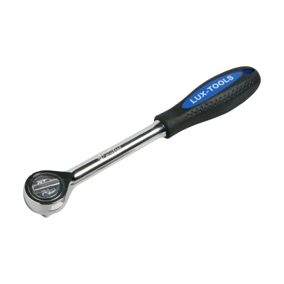 Die LUX-TOOLS Umschaltknarre Classic 12,5 mm (1/2″) ist für Rechs- und Linksgang umschaltbar und hat einen 2-Komponenten Griff für eine bessere Kraftübertragung.